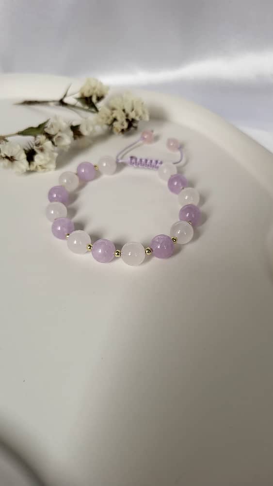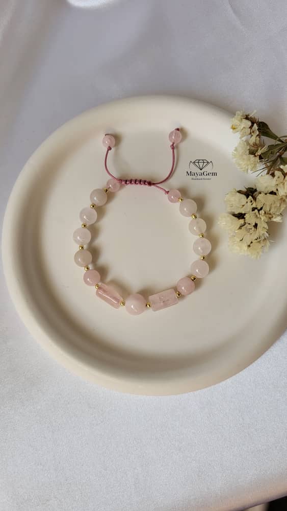 دستبند زنانه سنگ کونزایت و رزکوارتز طبیعی