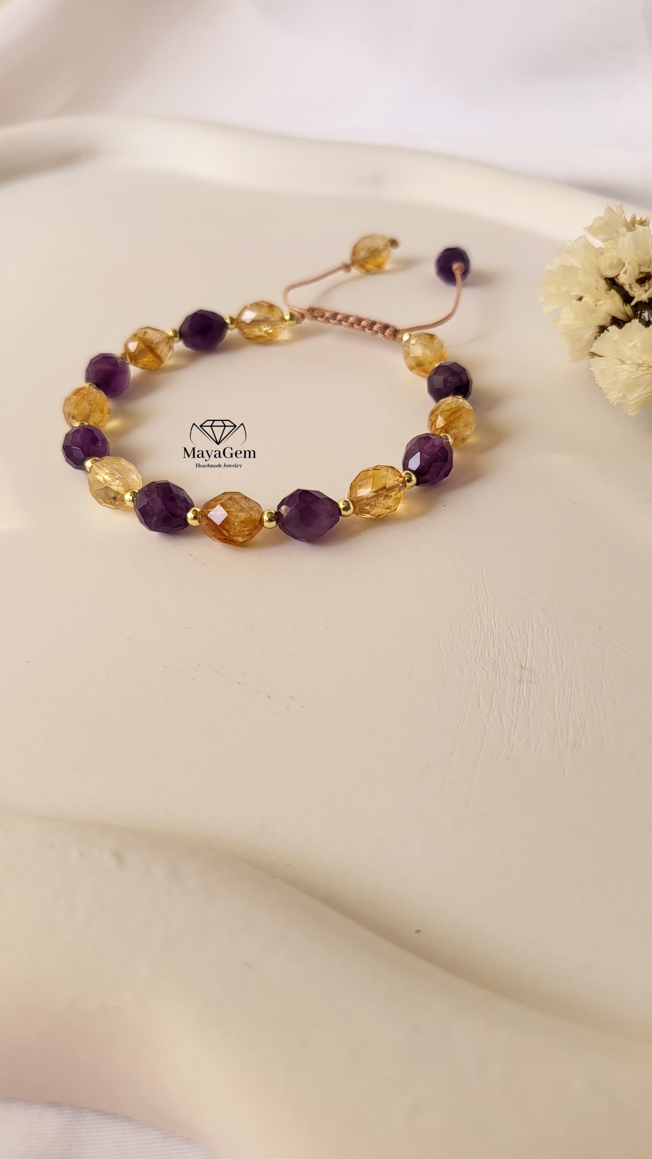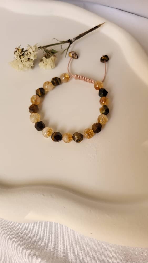 دستبند جذب ثروت سنگ چشم ببر و سیترین